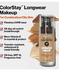 Stay flawless and shine-free all day! The Revlon ColorStay Makeup for Combination/Oily Skin SPF15 delivers up to 24 hours of long-lasting wear, giving you a smooth, matte complexion without the heaviness. Designed specifically for combination to oily skin, this oil-free formula helps control shine, minimise pores, and resist sweat, heat, and humidity for a fresh, just-applied look.